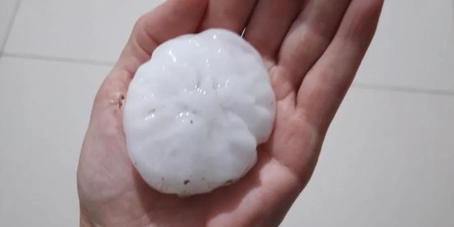 Granizo também atingiu a cidade de Rio Grande por volta das 15h30min dessa quinta-feira. Em alguns bairros e distritos, as pedras chegaram a ser comparadas, em tamanho, a uma bola de tênis.