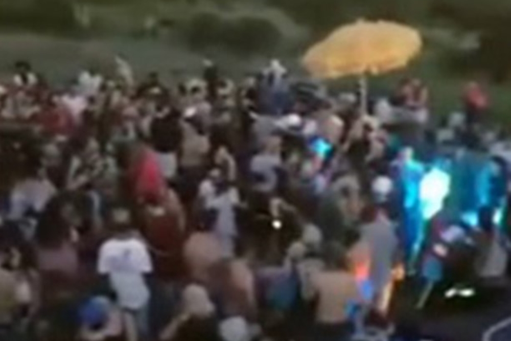 No vídeo é possível ver cerca de 150 pessoas que não usavam máscaras e circulavam entre os túmulos do local.
